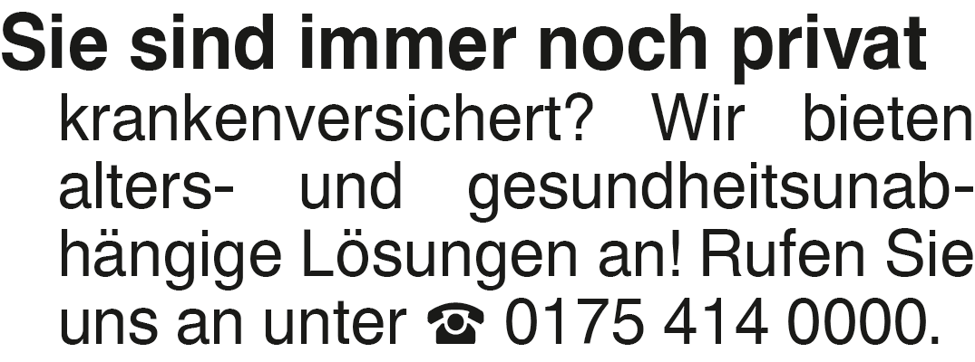 Die Anzeigen können auch in allen Zweigstellen aufgegeben werden.