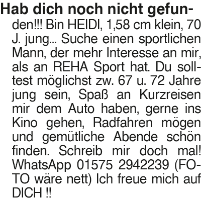 Erscheinungsdatum: Anzeige vom 11.4.2026 in der Rubrik "Sie sucht Ihn"