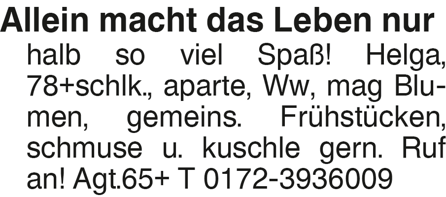 Erscheinungsdatum: Anzeige vom 11.4.2026 in der Rubrik "Sie sucht Ihn"